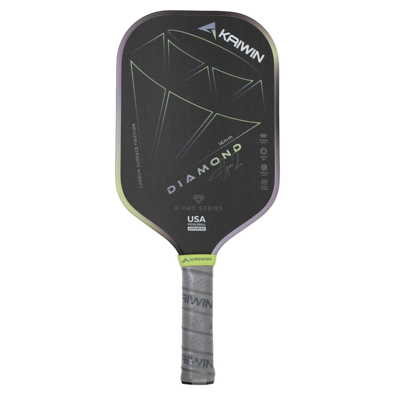 - Vợt Pickleball Kaiwin Diamond Gen2 16mm là mẫu vợt cao cấp mới nhất của Kaiwin, được thiết kế dành riêng cho người chơi yêu thích sức mạnh và kiểm soát bóng tối đa. Với công nghệ tiên tiến, đây là lựa chọn hoàn hảo cho những trận đấu chuyên nghiệp hoặc bán chuyên.