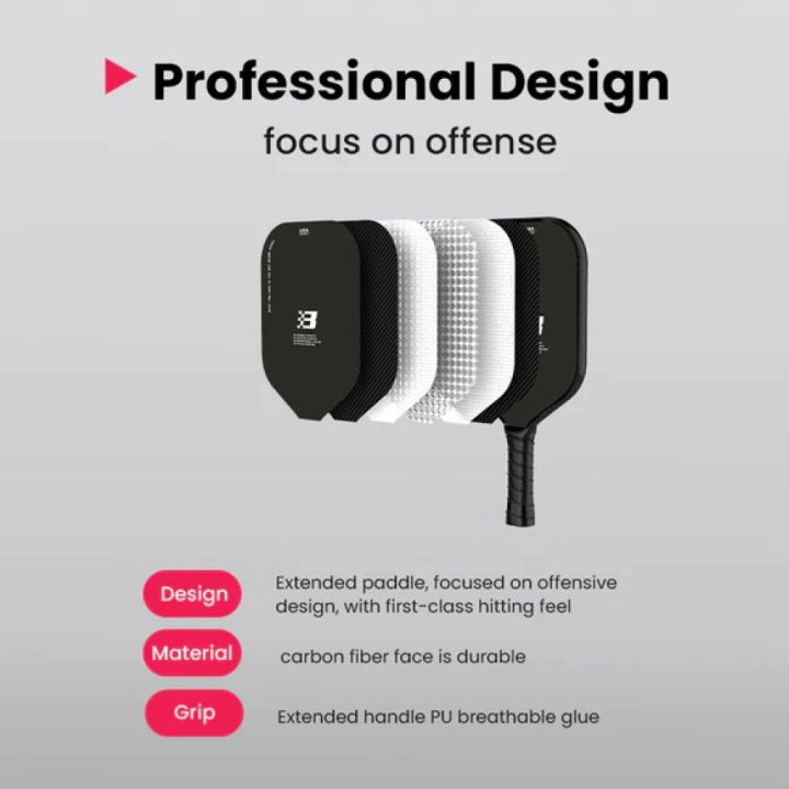 - Vợt Pickleball Beesoul Carbon Fiber STX1 với độ dày 16mm cùng với trọng lượng tiêu chuẩn giúp cân bằng, ít gây áp lực lên cổ tay đặc biệt là người mới. Thích hợp cho lối chơi phòng thủ và kiếm soát các đường bóng trên sân.